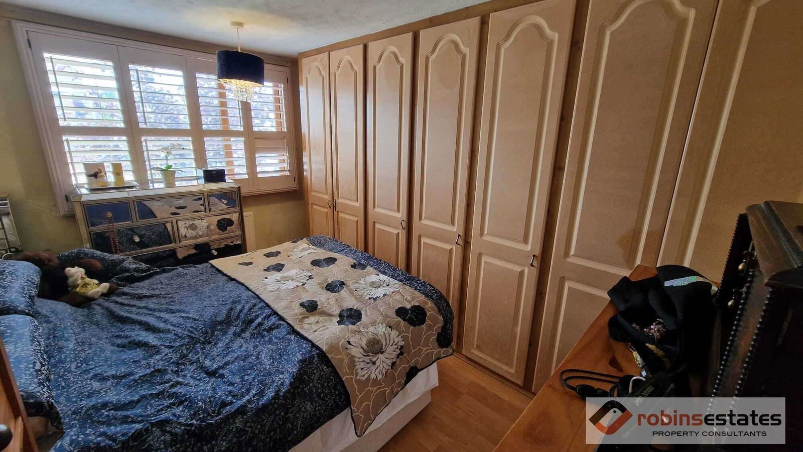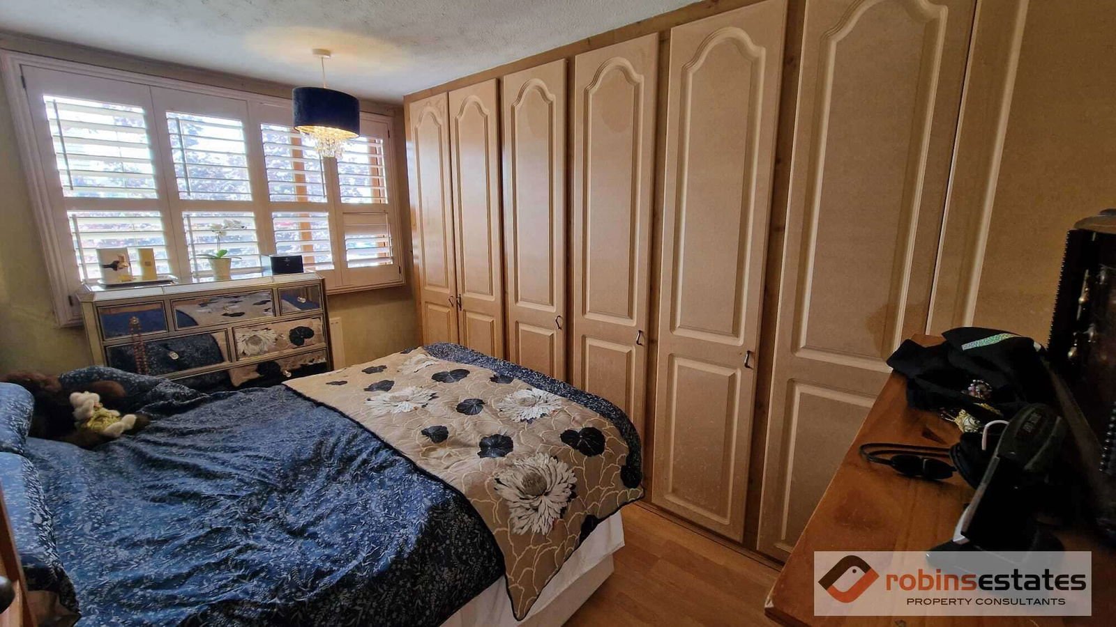 The master bedroom is fitted with a range of fitted wardrobes, which provide ample hanging and shelving space, radiator, window to front aspect with fitted plantation blind which is included in the sale, laminate flooring.