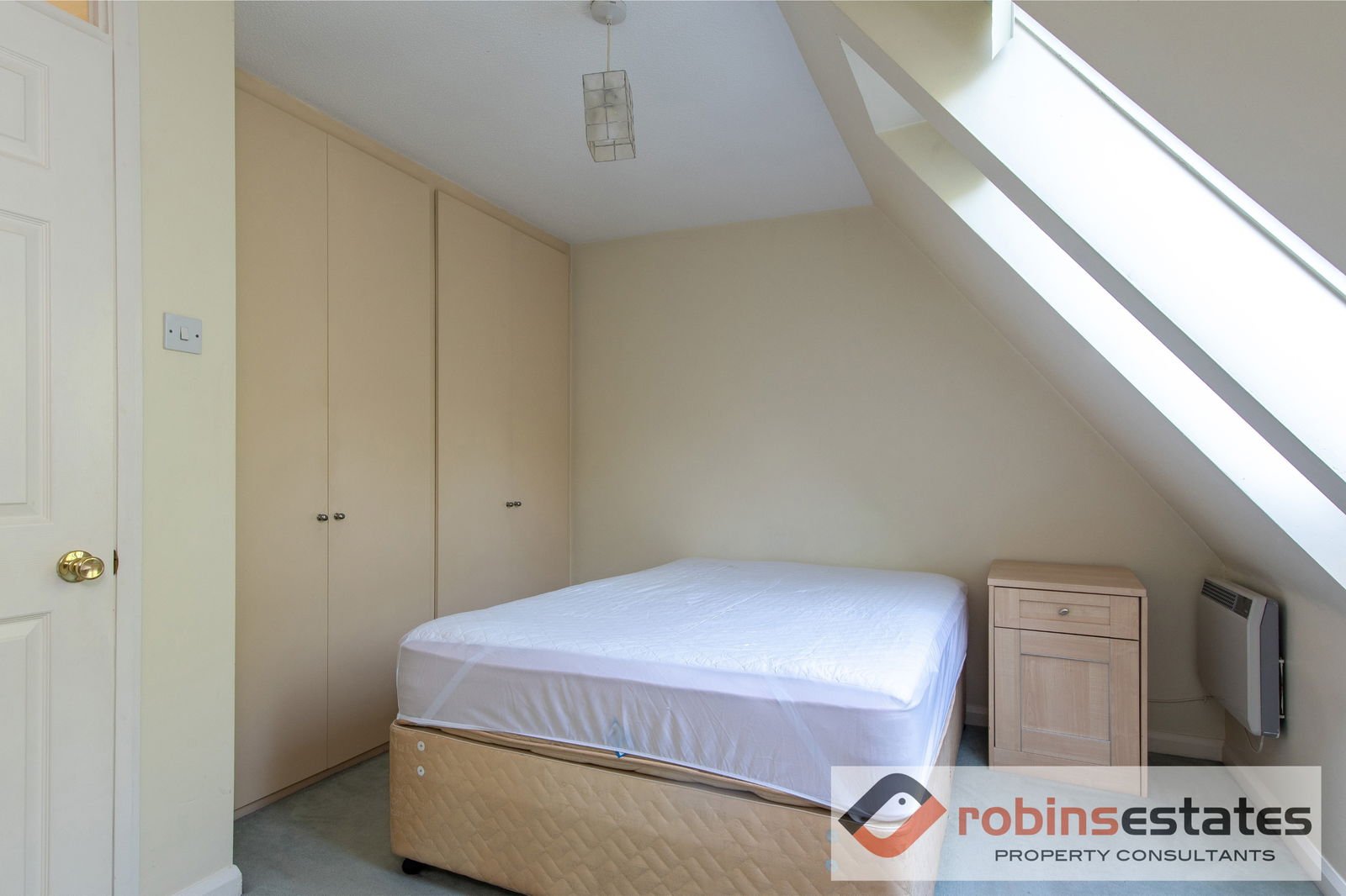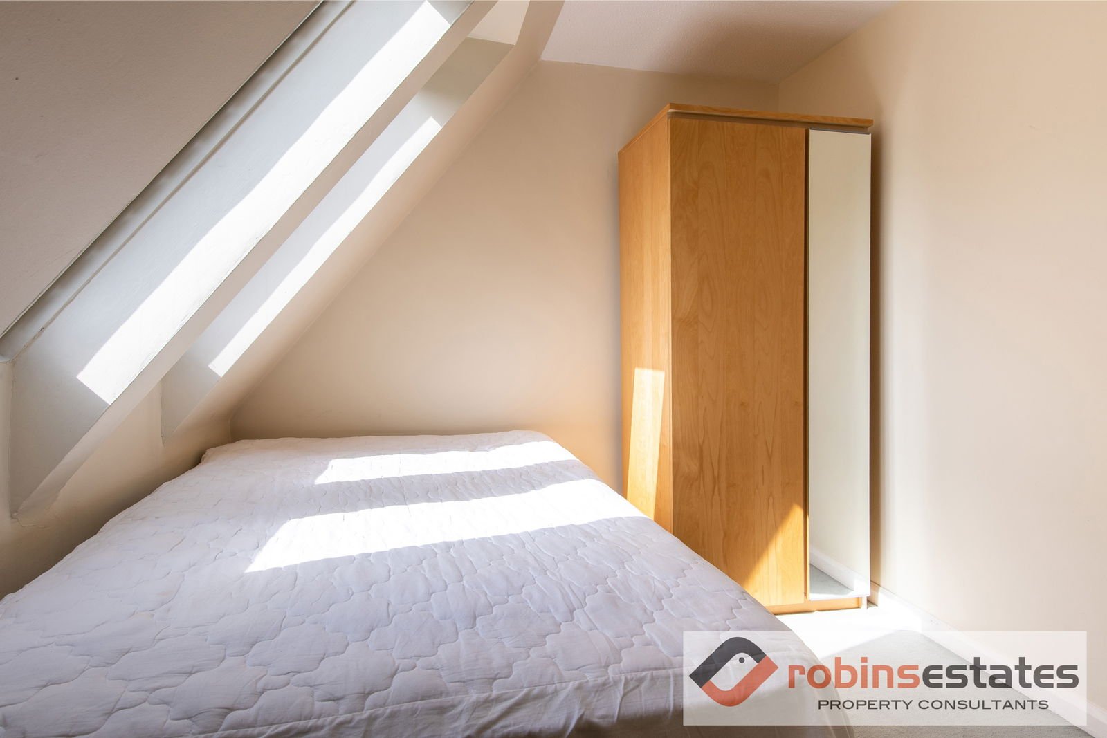 Having fitted wardrobes, electric heater, storage cupboard and two velux windows with pull down fitted blinds.
