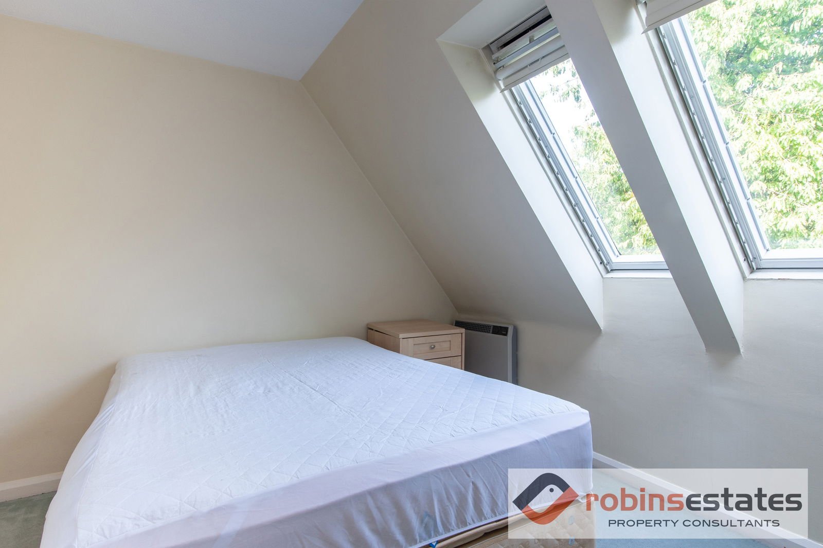 Having electric heater and two velux windows with pull down fitted blinds.