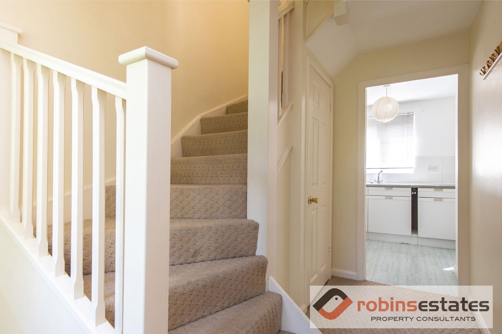 Entrance door leading to hallway giving access to, Lounge/Diner and Kitchen. Staircase leading to first floor, under stairs storage cupboard.