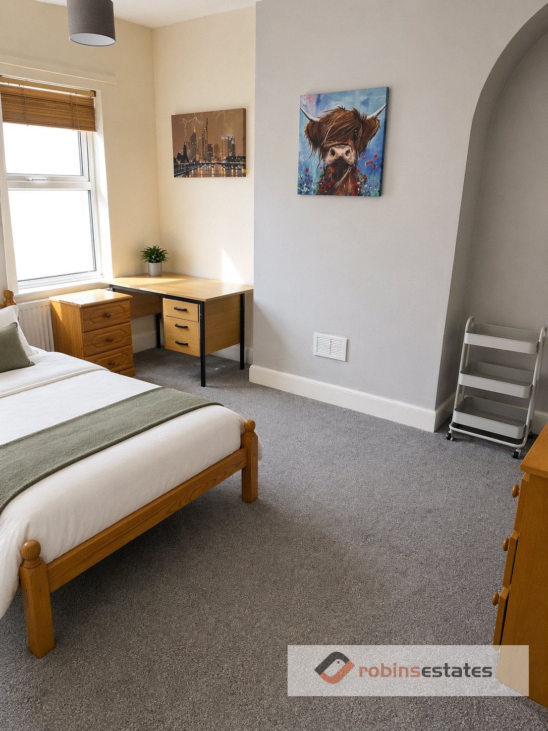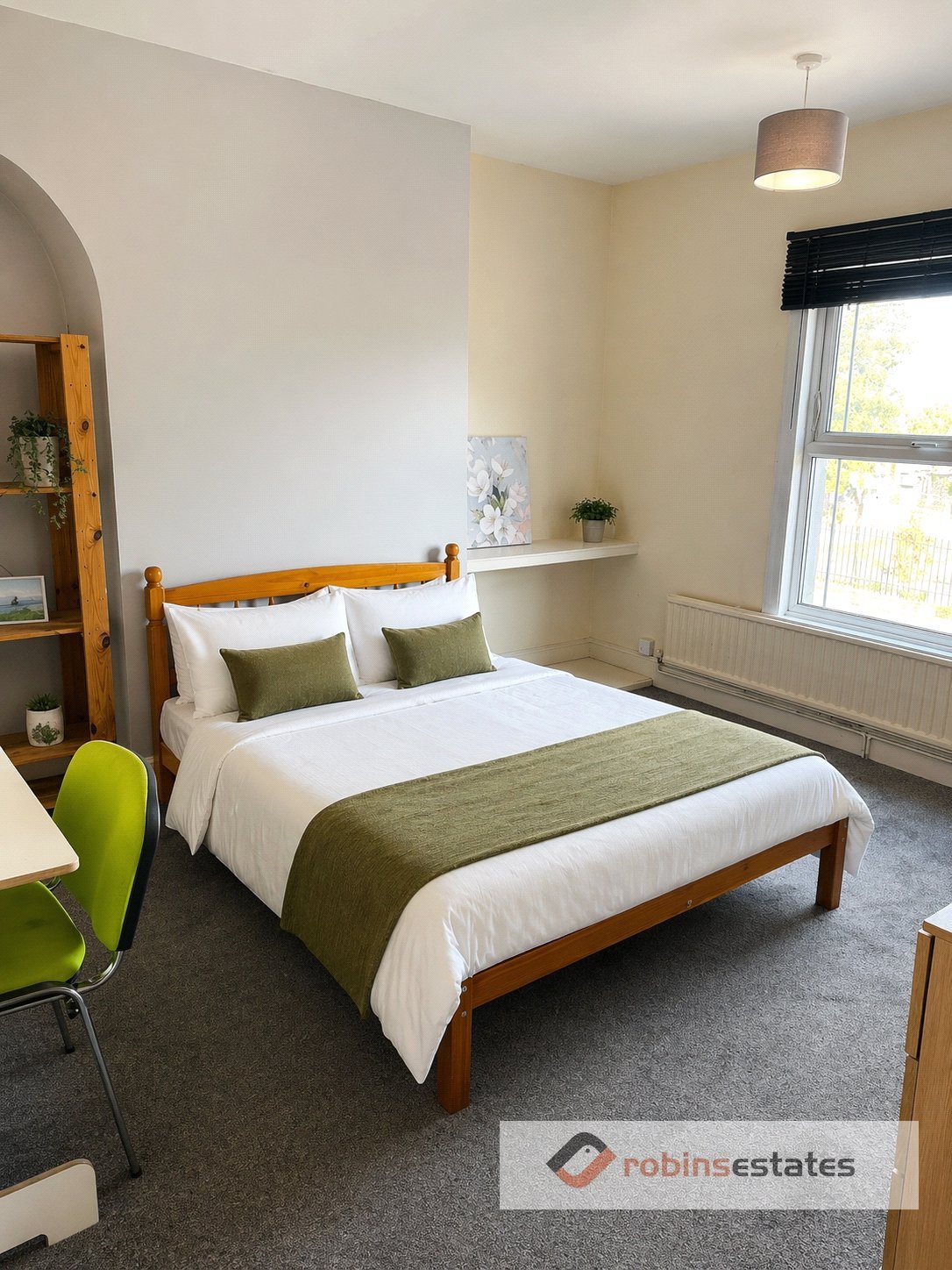 The accommodation comprises five well-proportioned bedrooms, all fully furnished to a high standard, complemented by TWO BATHROOMS plus a separate WC ensuring no morning queues. The LARGE KITCHEN is equipped with washing machine, dishwasher, fridge/freezer, oven and hob, and tumble dryer - everything you need for hassle-free student living. The generous living space features sofas and provides a SOCIABLE ENVIRONMENT perfect for entertaining and unwinding with housemates.