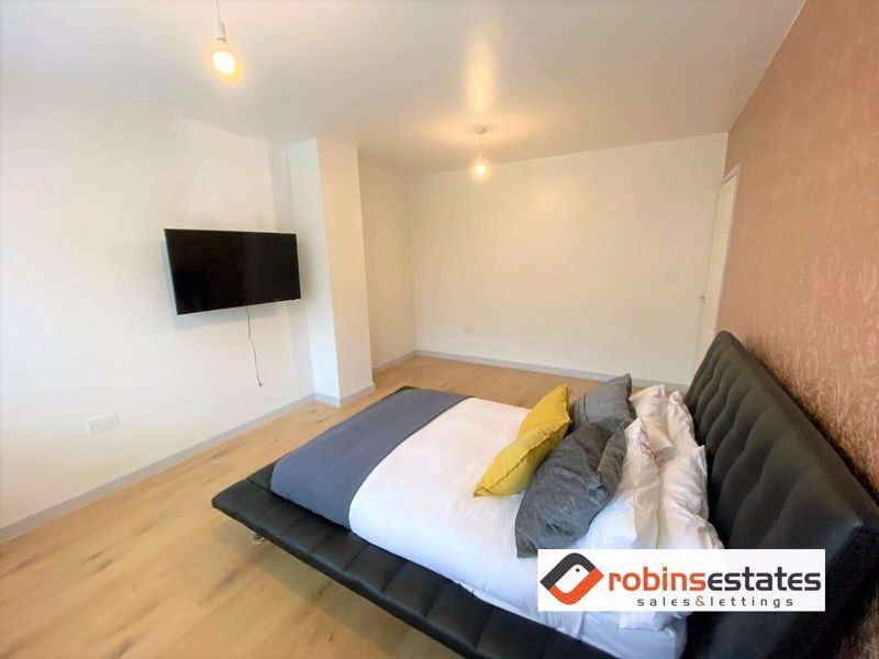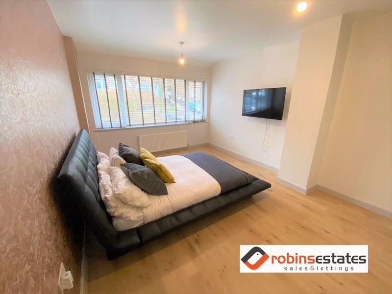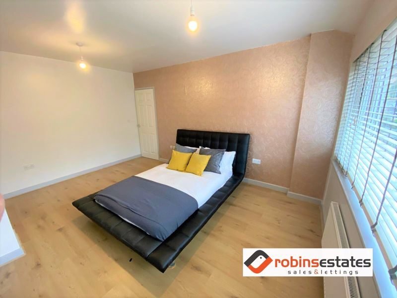 Bedroom 1- Spacious double bedroom with new laminate flooring. the bedroom is front facing, beautifully bright and overlooking the drive. The bedroom comes with a double bed and smart tv mounted on wall.