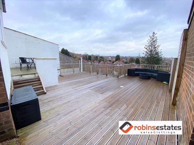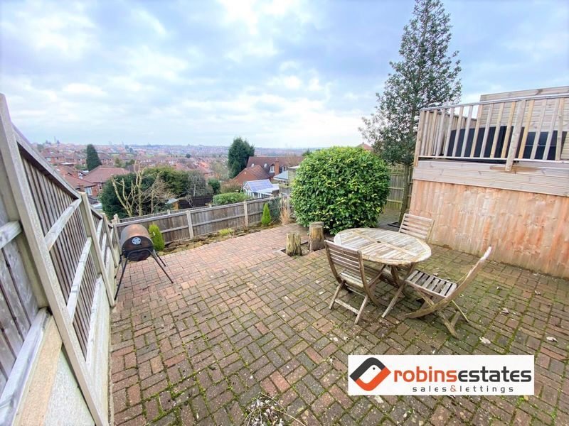 Garden- exceptionally large with 3 tiers. Tier 1 being a large decked area with large curved outdoor sofa with matching table. Tier 2 being a paved complete with wooden table and chairs and tier 3 being a astroturfed area.